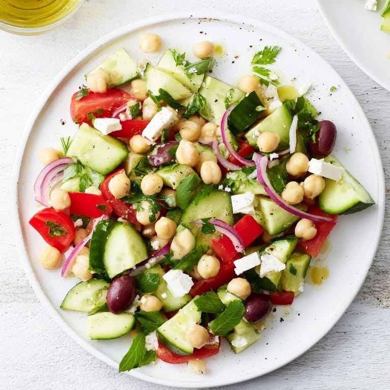 Save to Pinterest I was standing in my kitchen one August afternoon, staring at a pile of vegetables from the farmers market, when I realized I had no plan for dinner. The tomatoes were so ripe they were almost bursting, and the cucumbers felt cool in my hands. I started chopping without thinking, throwing things into a bowl, and what came together was this salad. It wasnt fancy or planned, just honest and bright, and it tasted like summer.