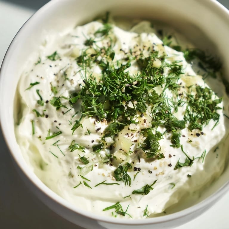 Save to Pinterest This dip sits on my table during the quiet moments before a dinner party actually starts. People drift toward it while we're still settling in, talking, catching up. There's something about yogurt-based dips that feels less formal than creamy spreads—more like you're sharing something you actually eat, not something you put on because you're supposed to.