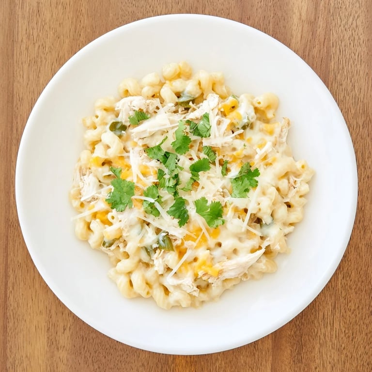 Save to Pinterest Whether you are serving a hungry family or looking for a comforting meal for yourself, this Green Chili Chicken Mac is a dependable and flavorful recipe that combines the best of Southwestern flavors with the timeless appeal of macaroni and cheese.