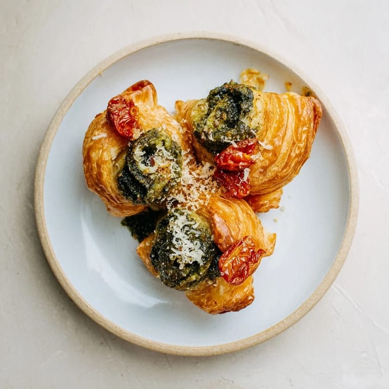 Save to Pinterest I stumbled onto these palmiers one harried Friday afternoon when I needed something impressive but had zero energy left. A box of puff pastry sat in the freezer, a jar of pesto hid behind the milk, and those sun-dried tomatoes I kept meaning to use finally found their moment. Twenty minutes of rolling and slicing later, I pulled golden spirals from the oven and felt like a magician. My neighbor popped by, ate four in a row, and asked if I'd been taking secret pastry classes.